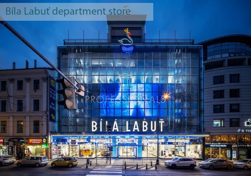 Obchodní dům Bílá labuť prošel rozsáhlou modernizací a nově nabízí široké možnosti pronájmu obchodních a kancelářských prostor. Nejmenší jednotky o velikosti 6 m2 v přízemí jsou vhodné pro prodej kosmetiky, šperků a služeb. Ve vyšších patrech jsou možnosti pronájmu až 1790 m2 prodejních ploch v jedné ploše. K dispozici jsou také nové unikátní kancelářské prostory 750 m2 v nejvyšších podlažích s panoramatickým výhledem a sklady o výměře až 413 m2. Celková plocha budovy je 19.200 m2. Návštěvnost ccca 7.500 až 7.800 osob denně.