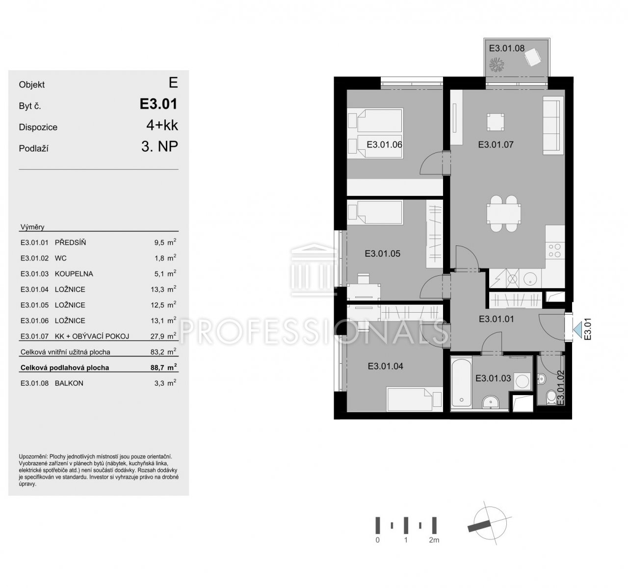 Prezentované informace jsou informačního charakteru a byly nabyty v dobré víře od vlastníka nemovitosti. Společnost PROFESSIONALS s.r.o tyto informace zprostředkovává a za jejich správnost a úplnost nenese odpovědnost. Změna vyhrazena.