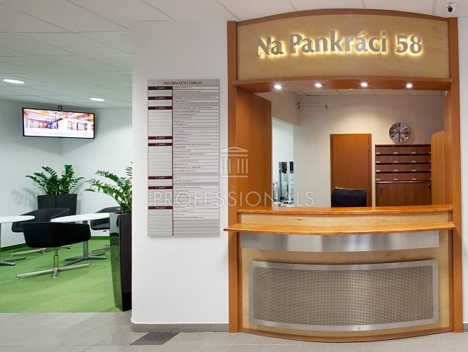 Kancelářské prostory k pronájmu v budově Na Pankráci 58. Budova nabízí celkem 3.800 m2 kancelářských prostor s možností pronájmu od velikosti cca 20 m2. V budově se nachází centrální recepce s možností poštovní podatelny a ostraha 24/7. Možnost parkování v parkovacím domě. K dispozici kancelář o velikosti 280 m2 od 1.4.2024.
