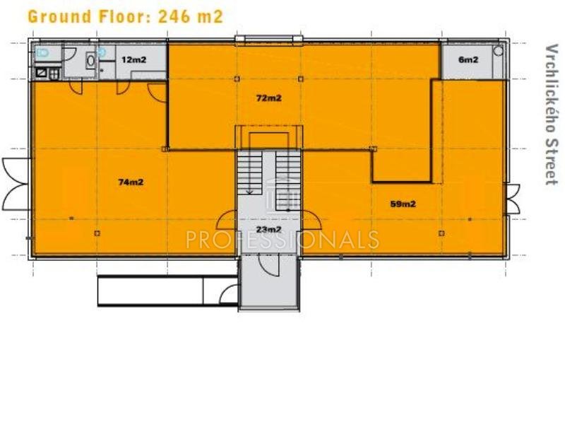 Moderní budova 486 m2 na Praze 5 po kompletní rekonstrukci. V přízemí se nachází schowroom 246 m2 velice dobře viditelný z Vrchlického ulice, který je pronajat. V prvním patře jsou flexibilní kancelářské prostory 240 m2. Vlastní parkoviště u objektu. Plně pronajato.