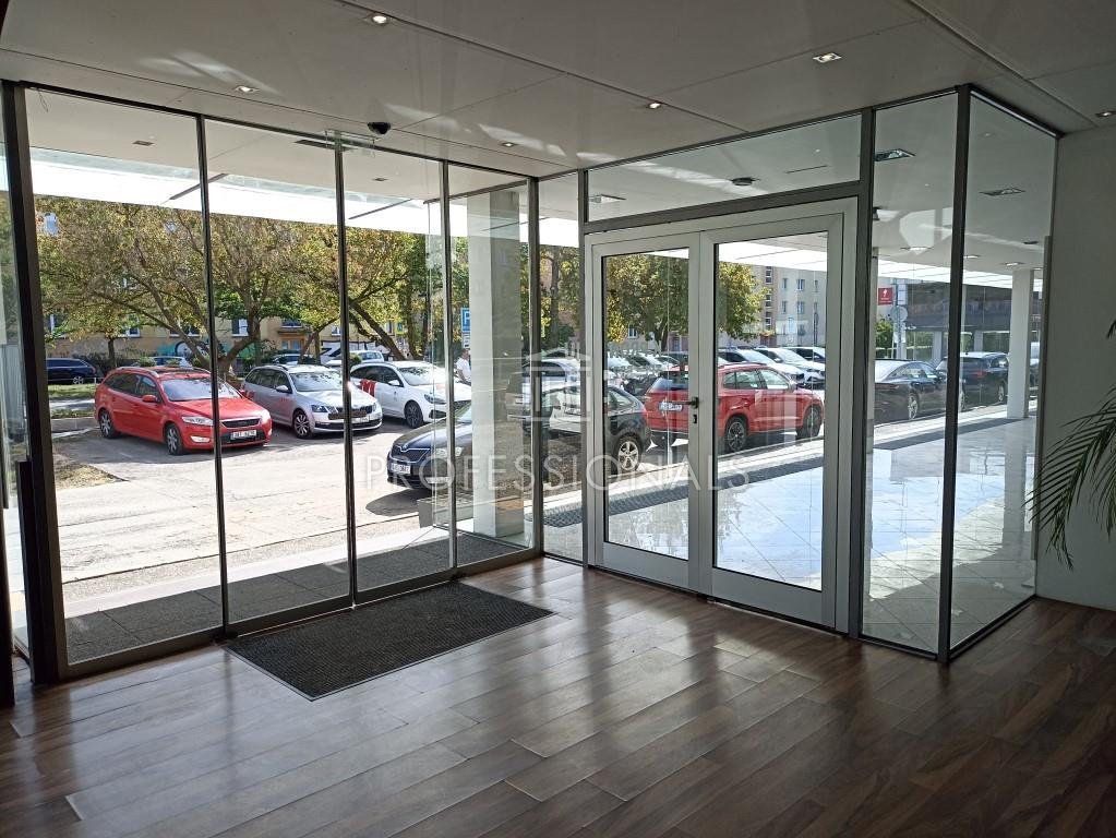 Kanceláře a obchodní prostory k pronájmu. Showroom 277 m2 a 135 m2. Budova má centrální recepci, dostatek parkovacích míst na venkovním parkovišti, je vybavena klimatizací a umožňuje flexibilní dělení prostor na menší jednotky.