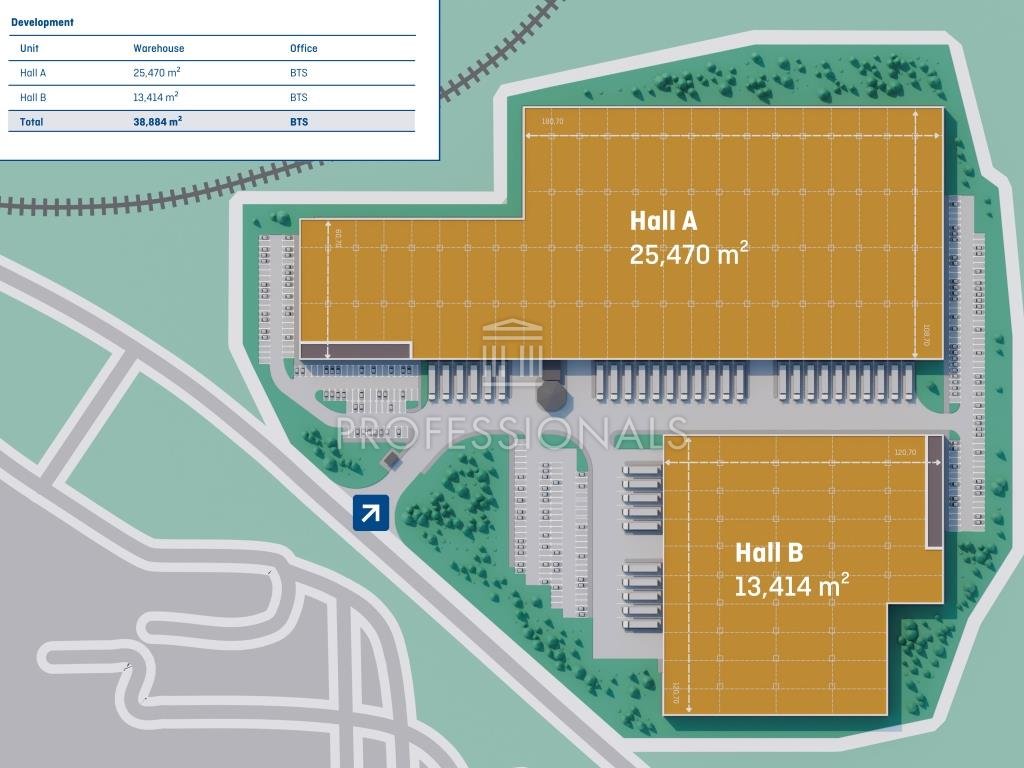 Budovy třídy A+ vhodné pro logistiku a lehkou výrobu. Dvě haly s celkovou plochou 38 900 m skladových prostor a flexibilními kancelářskými možnostmi. Řešení Build-to-Suit přizpůsobitelná požadavkům nájemce. Světlá výška až 12 m a nosnost podlahy 5 t/m (bodové zatížení regálu 7 t), 36 nakládacích ramp a 10 vjezdů v úrovni terénu.
