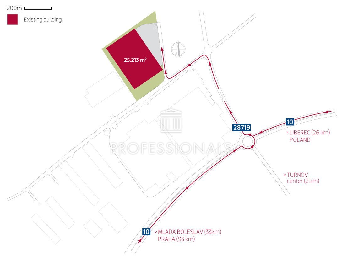 v těsné blízkosti dálničního tahu R10(E65) ve směru Praha-Liberec s výbornou dostupností do centra Turnova, nedalekého Liberce a Mladé Boleslavi.