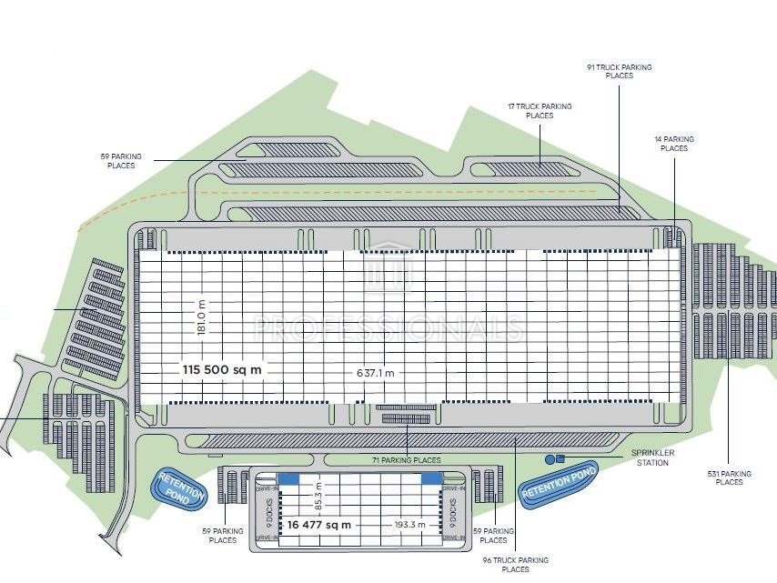 Areál nabízí moderní nájemní prostory ve dvou halách. Hala A 115500 m2 a Hala B 16477 m2. Výška hal 10.5 m2, nosnost podlah 5t/m2, LED osvětlení, ESFR Sprinklerový systém. Certifikace BREEAM Excellent. Výstavba v roce 2025. Dostupnost na dotaz.