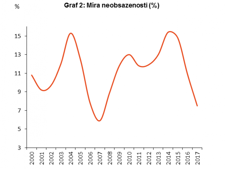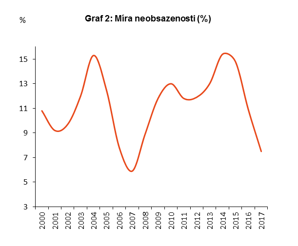 Neobsazenost pražských kancelářských prostor zůstala i v prvním čtvrtletí roku 2018 na velmi nízké úrovni. Byl zaznamenán mezičtvrtletní pokles o 110 bazických bodů; míra neobsazenosti se propadla na 6,4 %.