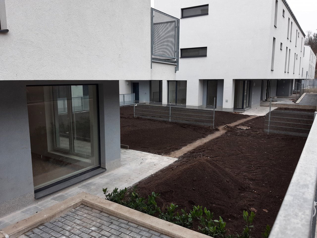 Výstavba Rezidence U Rokytky finišuje. Projekt pokročil do své poslední fáze a noví majitelé už se mohou pomalu těšit na kolaudaci. Ve vnější části areálu aktuálně probíhá výsadba zeleně a v jednotlivých bytech už jsou kompletně dokončeny koupelny, položené podlahy a osazené dveře.