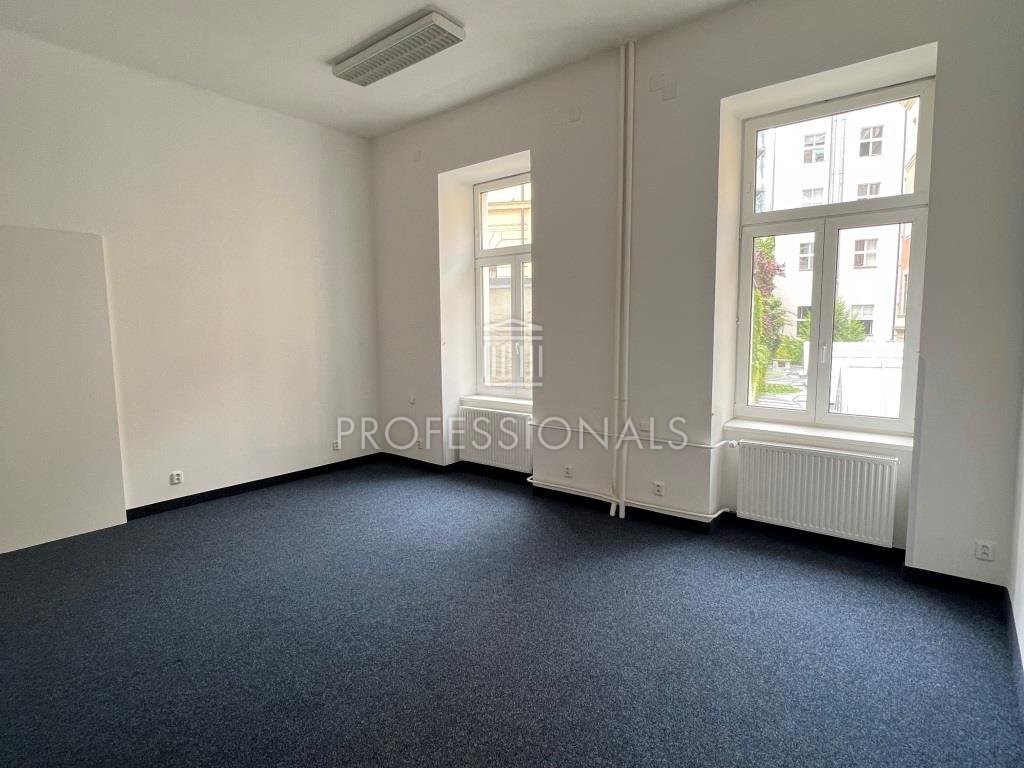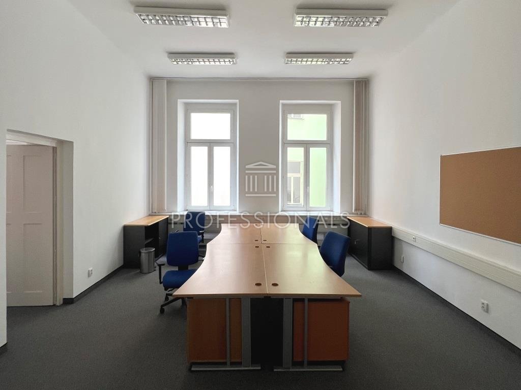 Nice renovated office directed to the street Opletalova.Brick house, networked, wooden doors, carpets, local heating, ceiling height from 3.2 to 4.2 m, an unlimited number of telephone lines. Custom reception at the entrance to the building, security building - 24 hours, elevator. Currently we offer office spaces from 30 m2.
